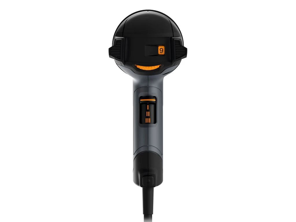 Pistolet à air chaud professionnel puissant, à commande électronique, avec réglage progressif de la température et du débit d’air.