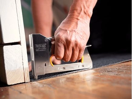 - Convient pour de nombreux travaux lourds tels que la fixation de bandes de calfeutrage, de textiles, de tapis, de cuir et de toile, en particulier lorsque la surface de travail est inégale ou difficile d’accès.
