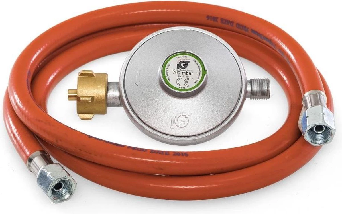 - Le régulateur de pression et le tuyau de gaz sont déjà inclus dans la livraison.